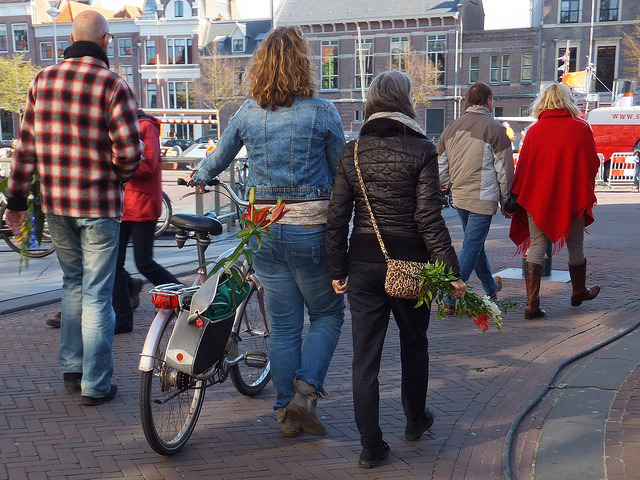 Na het bloemencorso nemen mensen bloemen mee van de wagens. Dat levert mooie foto’s op.