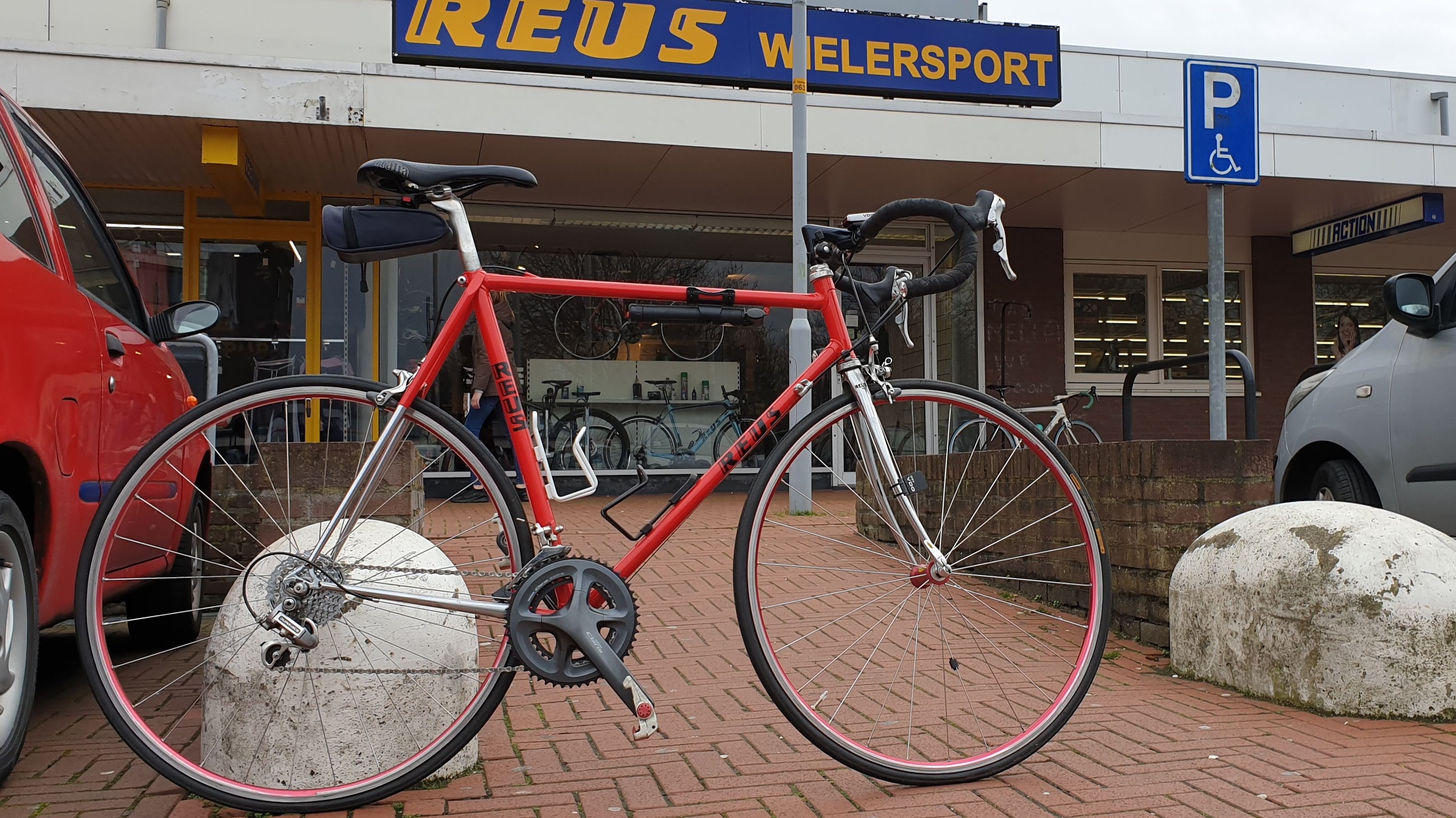 Dit is hem dan: de Rode Reus waarmee ik de Mont Ventoux ga beklimmen. Net voorzien van bergversnellingen is hij er al eerder klaar voor dan ik. Het is niet zomaar een klimmetje, die Kale Berg. Maar het is ook niet voor zomaar een doel.